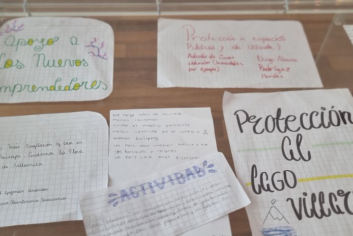 Por medio de metodologías participativas como recorridos por sus barrios, conversaciones entre pares y cartografías colectivas, se elaboraron postales con fotografías tomadas por los mismos estudiantes y con reflexiones, propuestas e inquietudes que escribieron desde su perspectiva y realidad.
