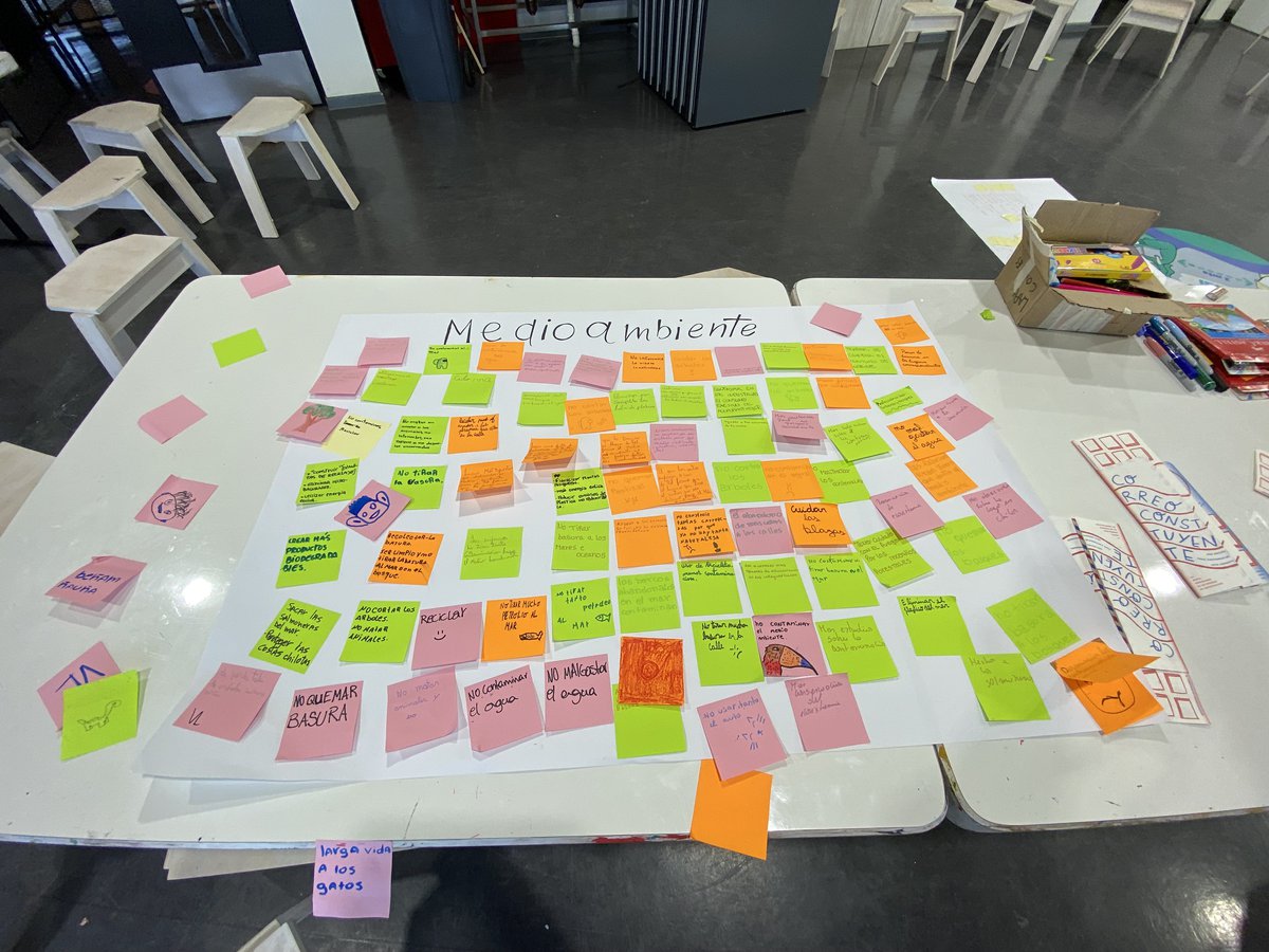 Las actividades de Correo Constituyente se dividen en tres jornadas. El primer día, se construye una “Línea de tiempo constituyente” en forma colaborativa, donde los y las participantes ubican cronológicamente aquellos acontecimientos e hitos que consideran relevantes para su historia y que marcaron el proceso constituyente según sus perspectivas. Luego se realiza un diálogo participativo con la metodología “Café del mundo”, donde los y las estudiantes divididos en pequeños grupos pasan por estaciones temáticas a partir de algunas de las comisiones temáticas de la Convención, por ejemplo: medioambiente, ciencia, cultura y tecnología, pueblos originarios, entre otras. En esta dinámica se fomenta el diálogo entre los pares, guiados por un monitor o monitora que va ordenando en post-its las opiniones y comentarios sobre los temas que se discuten.