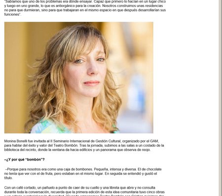 De Uruguay viene Martín Inthamoussú, director del Festival Montevideo Sitiada y director general de las Escuelas de Formación Artística del Sodre. Y de Argentina, Monina Bonelli, directora artística del Teatro 25 de Mayo y creadora y curadora de Teatro Bombón, que desarrolla obras escénicas site specific y que en su festival Bombón Vecinal une este formato al trabajo comunitario.