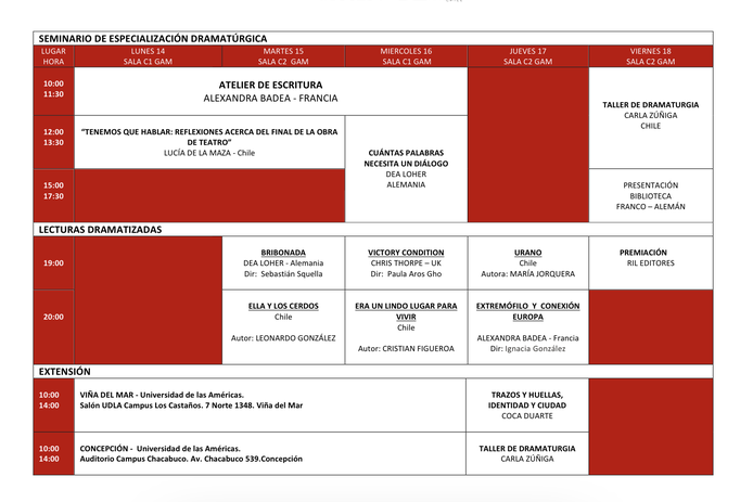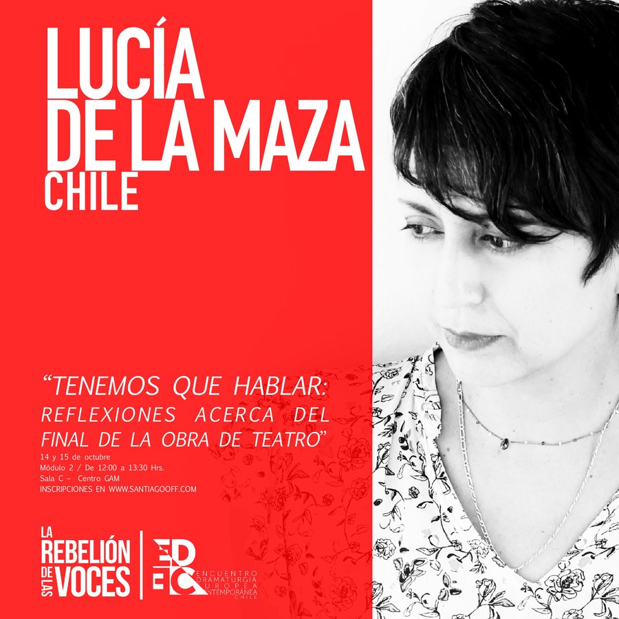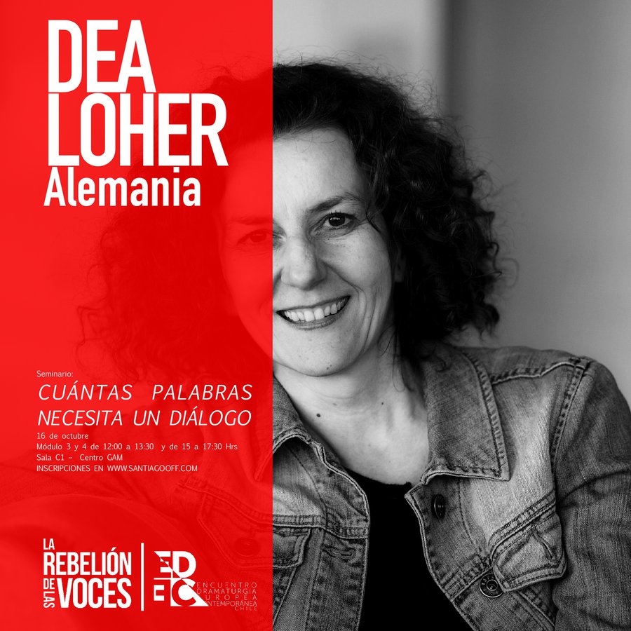 Entre las invitadas más importantes se encuentran; la dramaturga alemana Dea Loher, la francesa Alexandra Badea y el británico Chris Thorpe, además de las destacadas dramaturgas nacionales, Lucia de la Maza, Carla Zúñiga y Coca Duarte.