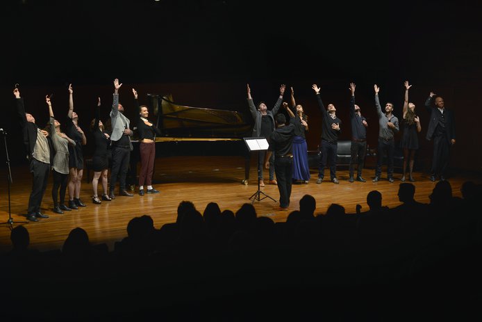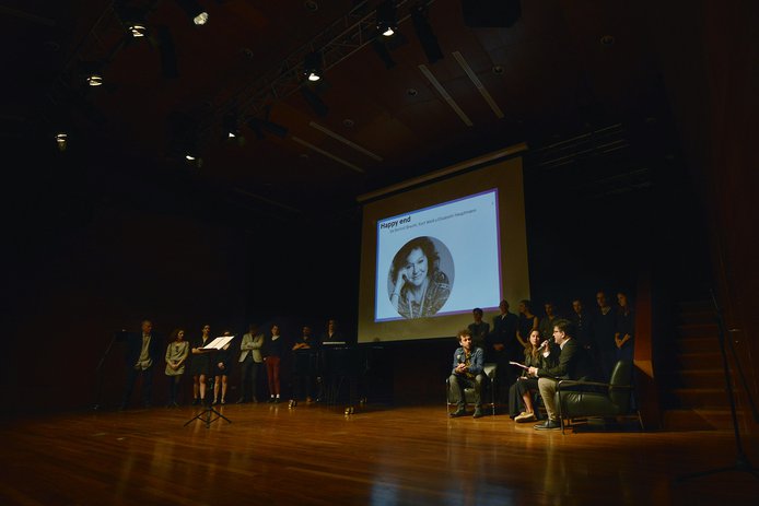 Posteriormente el elenco de Happy End, dirigido por Álvaro Viguera, cantó una pieza del montaje que se estrenará en Marzo en GAM y donde actúan Gloria Münchmeyer, Bastián Bodenhöfer, Gabriel Cañas, Elvira López y Geraldine Neavy, entre otros.