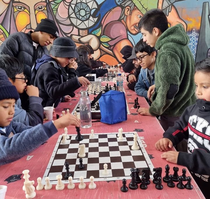 Una jornada familiar donde aprenderás sobre el tablero, sus piezas y movimientos, con charlas, mini juegos, partidas colectivas, simultáneas y mucho más. Al finalizar disfrutaremos de una exhibición de una partida simultánea entre un jugador experto con los y las participantes.
