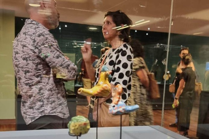 Finalmente, en la vitrina de investigación MAPA, ubicada en el piso 1 del edificio B, se exhibe un registro audiovisual en el que parte del equipo interdisciplinario a cargo del proyecto expone sobre el proceso de investigación de objetos patrimoniales desde miradas interdisciplinarias y el potencial que tienen estas aproximaciones para dar acceso a las colecciones.
