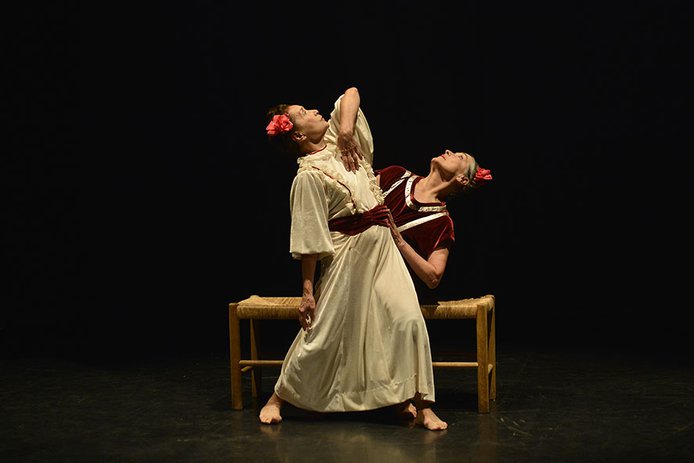 Danza contra el tiempo presenta un programa con tres obras que proponen un panorama de distintas estéticas, sonoridades y coreografías de la compañía. Lo que me dio el agua (2006), que parte de la pintura Las dos Fridas para hacer un homenaje a Frida Kahlo; el solo Sin nombre (2011) y el trío Historias mínimas (2015). La presentación comienza con un video en homenaje a Rayén Méndez, fundadora del grupo junto a Carmen Aros, Sonia Uribe y Gastón Baltra