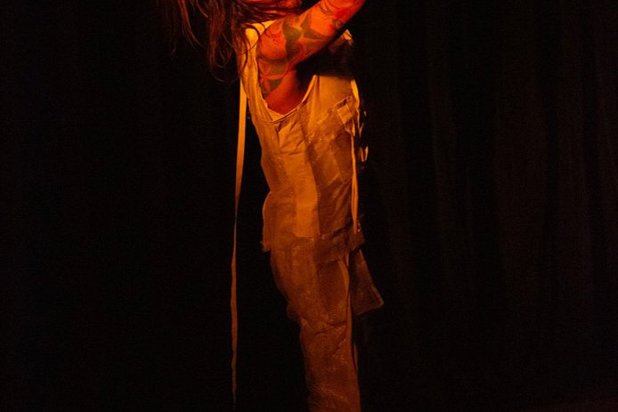 Unipersonal de danza butoh que narra la historia de una madre que se presenta ante su hijo cada vez que hay luna llena.