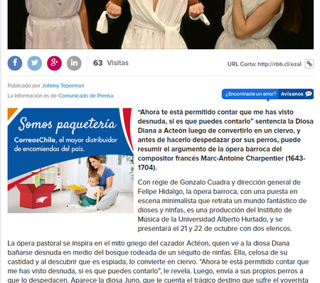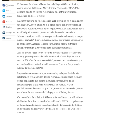 Moliere y Eurovisión, separados por tres siglos y unidos por un mismo compositor:Marc-Antoine Charpentier. En vida, creó música para la compañía de Moliere. Y muy lejos de entonces, terminó siendo el responsable de la música de apertura del festival Eurovisión. Ahora, Charpentier llega a GAM con Actéon a cargo del Instituto de Música Universidad Alberto Hurtado (UAH).
