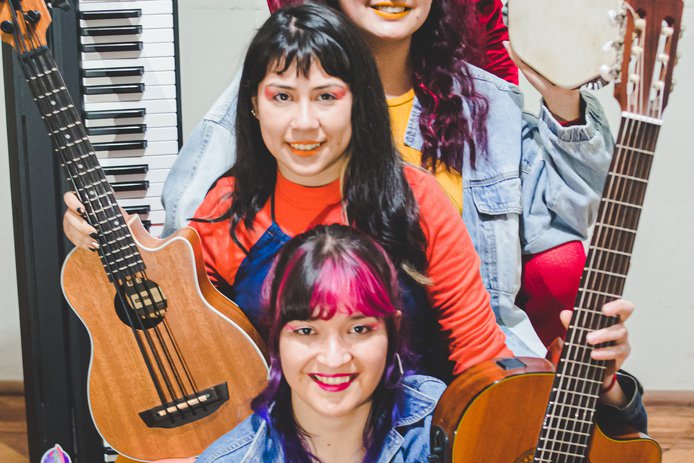 Pandero, cantora y compositora Cecilia Millaray | Piano, cantora y compositora Yorka Linzmayer | Bajo, cantora y compositora Amanda Fernández | Guitarra, cantora y compositora Helga Inostroza y Carla Villablanca