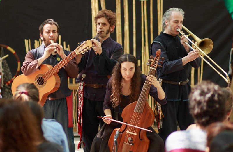 Tryo Teatro Banda es una compañía teatral independiente e itinerante, nacida el año 2000 y que combina la actuación con la literatura y la música original en vivo. Como “juglares contemporáneos”, trabajan con episodios antiguos y fundacionales de la historia de Chile y América.