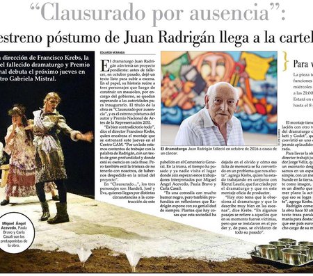 La muerte de Juan Radrigán en octubre del año pasado transformó inevitablemente a Clausurado por ausencia en un homenaje a su autor, por ser el primer estreno suyo tras su partida.