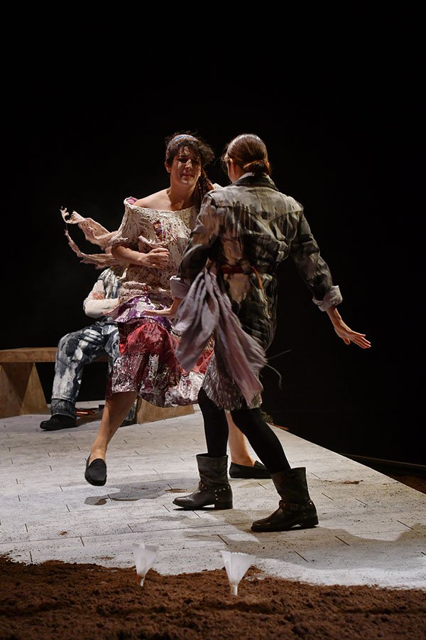 Escrita hace 10 años, la obra traza paralelos con Alemania para destacar la forma en que ellos se hicieron cargo de su memoria mientras nosotros no. La puesta en escena sitúa a los personajes en un memorial que se hunde, entre sonidos que remiten a la comunicación oficial de gobierno.