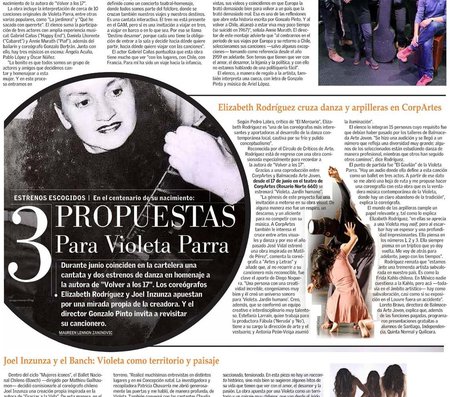 Cantata que celebra los 100 años de Violeta Parra, mostrando su viaje musical y personal por Europa. Una obra dirigida por Gonzalo Pinto e interpretada por Annie Murath, Daniela Lhorente, Gabriel Cañas y Gonzalo Beltrán.
