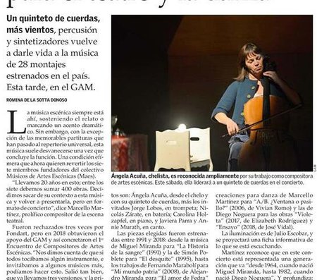 Un concierto que revisa parte de la historia del teatro y danza nacional desde su sonido. Un ensamble de 15 músicos interpreta el trabajo de nueve compositores para 24 obras de teatro y danza.