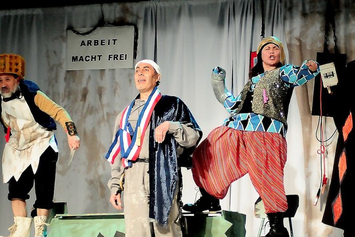 Además de escribir el texto, Radrigán ensaya acá su faceta de director con la Compañía Teatro Locos del Pueblo – Categoría Veteranos Emergentes, el mismo grupo con el que antes montó Qué tiempos aquellos… Fanta y Romo. Y como ya se ha vuelto característico en las obras de este Premio Nacional de Artes de la Representación, incluye música y baile.