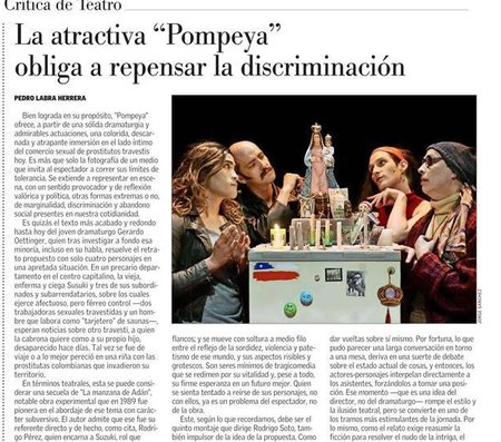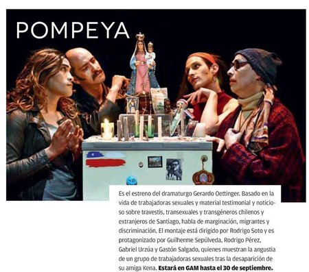 Pompeya es una obra que desde el mundo del comercio sexual habla de marginación, migrantes y discriminación. La obra está basada en testimonios y material documental.