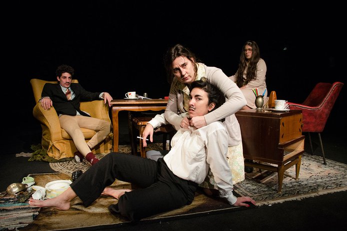 En Rabiosa melancolía, la palabra, el silencio y las sonoridades instalan un extrañamiento naturalizado, sin edad, tiempo ni lugar. Los actores, también cantantes, comparten escenario con la premiada cantautora Malena Muyala, que también actúa. La propuesta musical es minimalista, pero protagónica, en diálogo con la palabra hablada y cantada. La reconocida dramaturga y directora uruguaya Marianella Morena, que debutó en Santiago a Mil con Las julietas, vuelve al festival para estrenar en Chile su última obra.