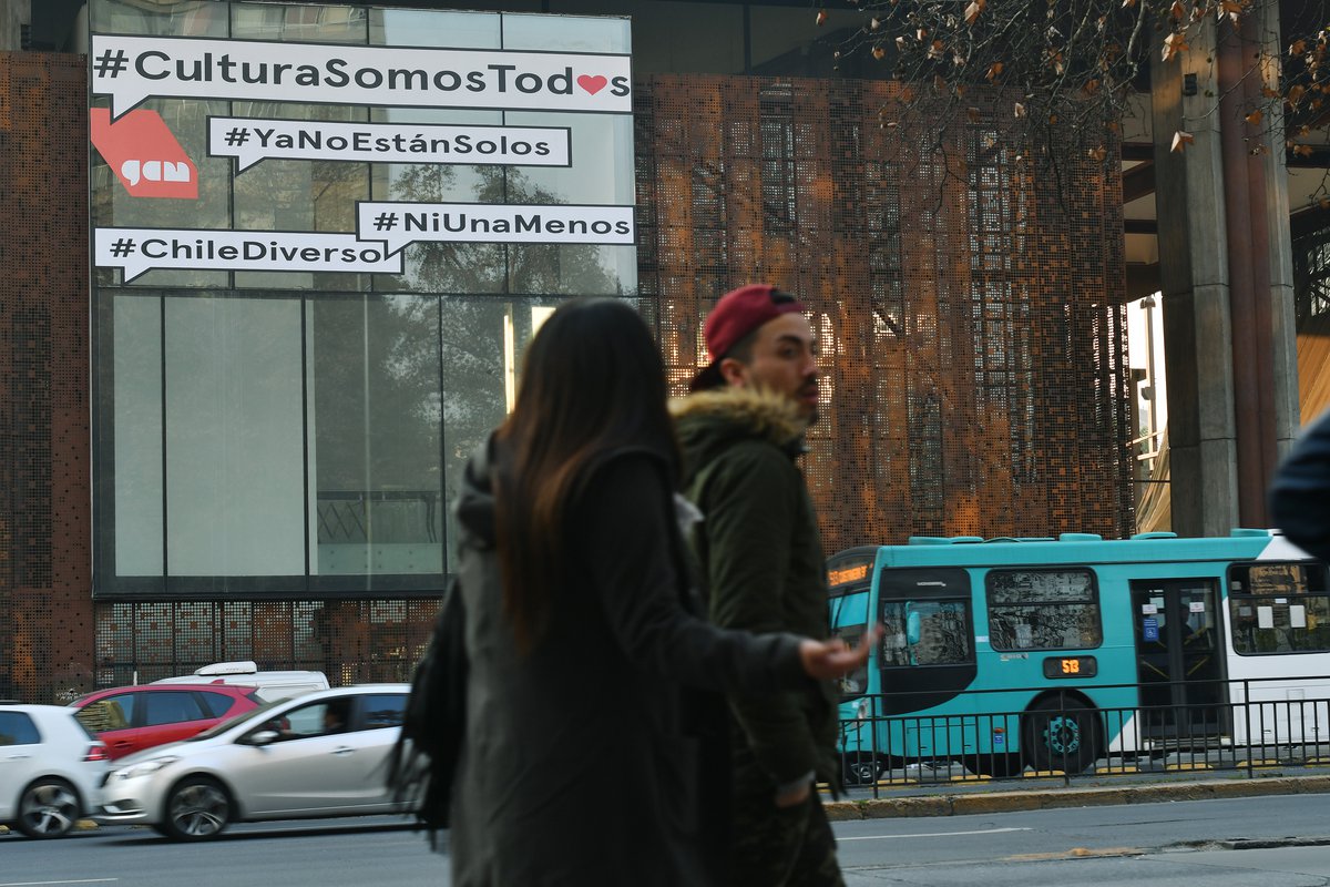 Niños acompañados, diversidad e inclusión y no más femicidios, son las tres banderas que el centro cultural GAM decidió destacar en su fachada que mira a la Alameda. Desde el viernes 4 de agosto, los transeúntes podrán leer el mensaje “Cultura somos todos”, con las campañas alusivas a “Lo niños ya no están solos”, “Ni una menos” y “Chile diverso”.
